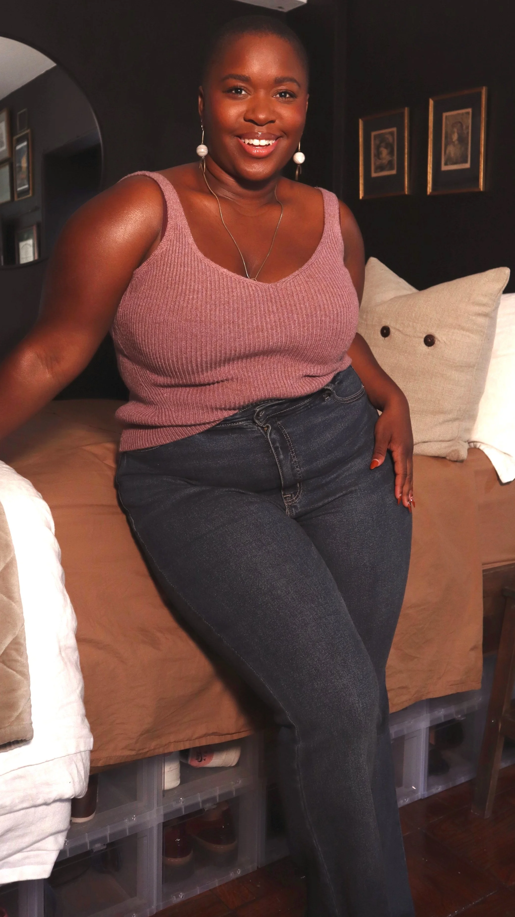 I’m wearing the Higher High-Waisted Flare Jeans from Old Navy in size 14.