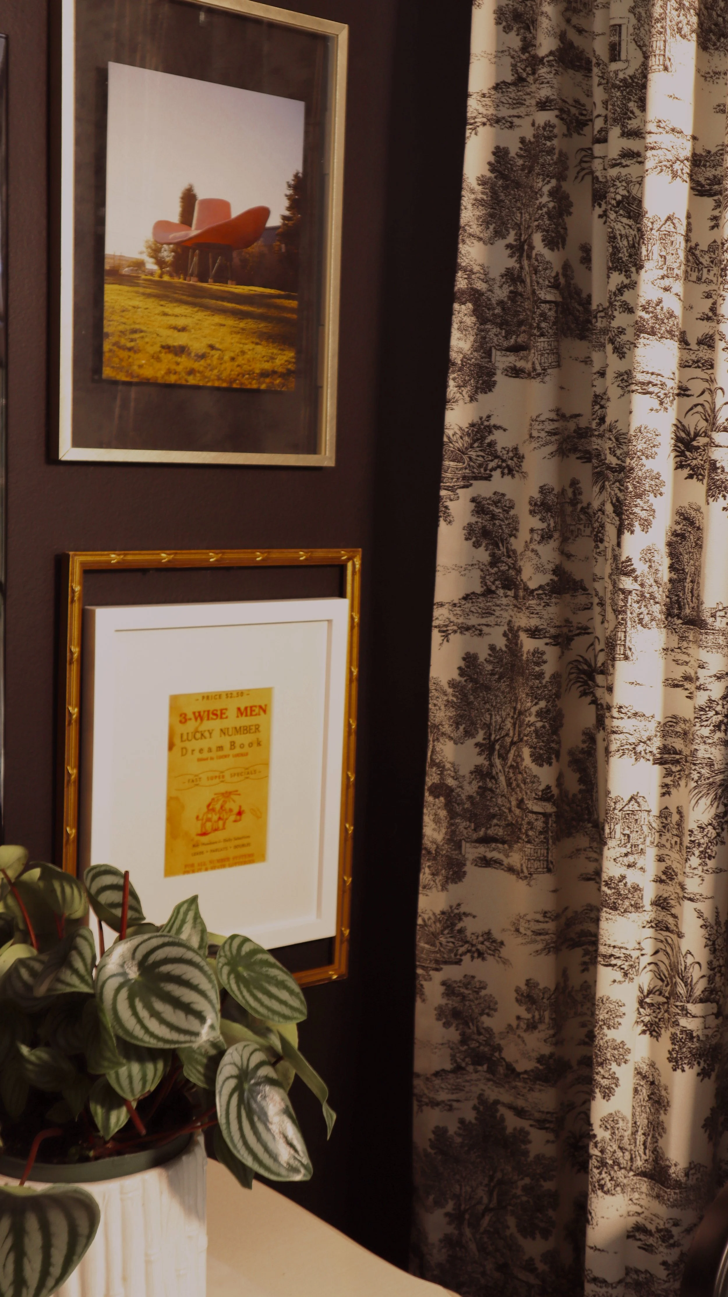 Buying original art can get pricy, but there is no reason not to adorn your walls. Find unique frames at the flea market and pop in those family photos you keep tucked in a drawer. Or, if you want to support local artists, check to see if they offer prints. I picked up one by my friend and incredible photographer, Farrah Skeiky, and it looks fantastic on my TV gallery wall.