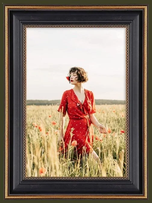If you want a black frame with a bit of personality, might I suggest this beauty from Amazon? While it does not come with a mat, it does have a gold beaded trim on the inside for some added drama. I’d style this as a stand alone Fram or in a small corner gallery wall.